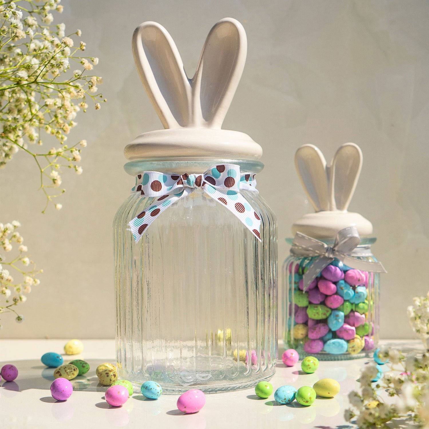 Easter - Large Glass Jar (With Ceramic Bunny Ears)